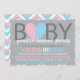 O género do bebê de CChevron revela o convite de festas com um fundo da viga e um coração azul e cor-de-rosa. O convite tem-lhe um elemento moderno da tipografia. Revele o género de seu bebê novo com família e os amigos jogando um género revelam o partido. Celebração a mais nova de hoje do bebê.
