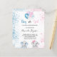 Para um chá de fraldas revelador de gênero. Um fundo branco chic. Decorados com balões claros e azuis, cor-de-rosa e branco e poeira brilhante. Um elefante bebê e um elefante da gaby. Personalize e adicione o nome da mãe a ser e os detalhes da festa. O nome e o texto: Boy ou Girl são escritos com um estilo escrito à mão