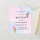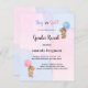 Para um chá de fraldas moderno estilo boho, gênero revela festa. Um fundo azul, cor-de-rosa, branco e aquoso e dois ursos peludos segurando balões. Personalize e adicione um nome e detalhes da parte.