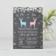 O género dos cervos do inverno revela o convite. Floco de neve branco. Ele ou ela. Menino ou menina. Rosa e azul. Homem de pão-de-espécie do feriado do Natal. Fundo do quadro. Preto e branco. Para uma personalização mais adicional, clique por favor "personalizam-no" botão e usam-nos nossa ferramenta de design para alterar este modelo.