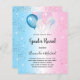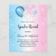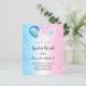 Para um gênero revela chá de fraldas, um fundo de gradiente azul e rosa. Decorados com balões azuis, cor-de-rosa e brancos. Personalize e adicione o nome dos pais e os detalhes da festa. O nome e o texto: Rever de Gênero são escritos com um script de estilo escrito à mão