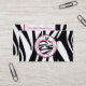Um cartão de visita que caracteriza um fundo preto do impressão da zebra com guarnição cor-de-rosa. Texto cor-de-rosa e preto sobre o branco completo. Personalize com sua informação. As características do lado oposto que combinam a zebra imprimem o fundo. A maçã de harmonização do impressão da zebra dentro do círculo deu forma ao quadro cor-de-rosa.