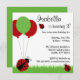 Convites de festas de aniversários do joaninha. Um convite de aniversário temático do joaninha adorável com joaninhas e os balões vermelhos. Personalize facilmente para seu partido!