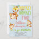 O macaco vê um convite de aniversário de duas rapa