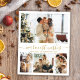 O mais quente dos modernos desejos escreve uma carta fina de Natal com colagem de fotos em branco e Dourado. Esta placa de Natal minimalista apresenta uma colagem de 4 fotos na frente e uma foto extra na parte de trás. A saudação de "Desejos Mais Quentes" é elegantemente escrita à mão em caligrafia dourada sobre um fundo branco limpo, oferecendo um toque chic e moderno à sua mensagem de feriado. O verso inclui um modelo de saudação personalizável com um motivo de rabisca cardíaco e espaço para uma foto adicional. Perfeito por compartilhar alegria festiva com familiares e amigos, esse cartão personalizado é a maneira ideal de celebrar o feriado no estilo.