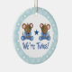 O ornamento gêmeo do bebê do menino do primeiro Natal maravilhoso tem o rapaz pequeno que os ratos vestidos no azul com "nós são citações dos gêmeos" no fundo do floco de neve. Um presente bonito da lembrança para um chá de fraldas gêmeo ou um stuffer da meia para os pais dos gêmeos. Arte C. Ne Metzger.