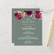 Um cartão de cardápio do estilo boêmico elegante. Leve rosas de cor aquosa, de cor rosa e burgundy. Modelos para seus nomes, data e menu de casamento. Sage verde em frente e atrás. Letras brancas coloridas.