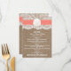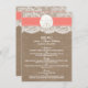 A coleção de casamentos de areia coral e dólar é uma design impressionante que apresenta um adorável fundo de efeito de burlap top rústico com uma trim romântica de efeito de renda branca vintage terminada com uma faixa de areia e coral impressionante. Esses menus podem ser personalizados para sua ocasião especial e fariam a modelo perfeita para menus de casamento, menus de chá de panela, menus de festa de noivado, menus de festa de aniversário e muito, muito mais. *Observe que o Zazzle só vende produtos impressos para que este item não tenha nenhum material real de burlap, renda, dólar de areia ou fita.