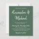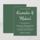 Elegante trendy tipografia do orçamento barato convite para casamento em simples carta branca e verde de caçador de mudas, com os nomes de noiva e noivo com roteiro de caligrafia. ++++++++++++++++++++++ Você pode alterar as cores do texto e do plano de fundo após selecionar a opção PERSONALIZAR mais. +++++++++ O convite é adequado para qualquer época - primavera, verão, outono, inverno - recepção de casamento interior.