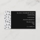 Um design profissional que caracteriza um teste padrão simples de tesouras pretas em um fundo branco com um grande círculo preto no meio para seus nome e profissão. Isto seria apropriado para qualquer um que trabalha com tesouras tais como um cabeleireiro, um barbeiro, um alfaiate ou uma costureira.