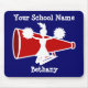 O mousepad do cheerleader com megafone e cheerleader do elogio em vermelho, em branco, e o azul. Personalize com seu nome e nome da escola, mude o texto ou remova o texto. A cor do fundo pode ser mudada ou outras escolhas da cor estão disponíveis. Grande stuffer do presente ou da meia para o cheerleader em sua vida.