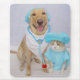 Um laboratório amarelo vestido como um cirurgião e um gato na maior parte escocês da dobra vestidos como um paciente. O mousepad é customizável.
