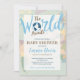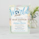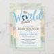 Todos aguardam a chegada do doce pacote de alegria a caminho. Convide seus amigos para celebrar com este adorável convite para o Chá de fraldas "O Mundo Espera".