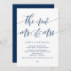 Linda Caligrafia Azul-Marinho Moderna, Anúncio de Casamento Intimo, cartão de convite (o novo sr e sra). Isto é perfeito para o seu casamento e festa de celebração pós-casamento. Adicione seus detalhes na fonte / letra correspondente.