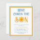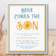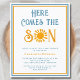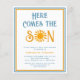 Convide a família e os amigos para o seu chá de fraldas temático com o convite para chá de fraldas deste rapaz amigo do orçamento. Apresenta o texto "Aqui Vem o Filho" na tipografia na moda com uma aquarela amarela. Facilmente personalizável. Original Watercolor © Michele Davies.