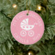 O ornamento da árvore de Natal de 1rua do bebê com carruagem ou ameixa bonitinha. Como opção, adicione sua própria imagem fotográfica no verso. Bebê buggy / carrinho de design com modelo de na moda com tipografia para nome e data. Mantenha-se divertido para o primeiro Natal de recém-nascidos. Personalize a cor de fundo para cor rosa-menina ou azul-esbranquiçada para uma menina ou um menino novo. Feliz Feriados! Dourada cadeia de brilho incluída. Condecorações de Natal personalizadas para novas mamães e pais / pais ou avós.