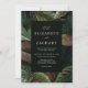 Este moderno convite botânico apresenta um fundo escuro e sangrento de folhas de outono em tons de verde e marrom. Personalize-o com os nomes da noiva e noiva e outros detalhes do casamento em branco em um retângulo esverdeado fora do preto. O reverso é uma sombra correspondente de fora do preto. Ideal para um casamento outono!
