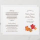 Design do programa de cerimônia de núpcias de outono com fundo de marfim apresenta uma folhagem de queda vibrante em cores amarela, dourada, laranja, cobre e vermelha. Personalize o texto personalizado marrom de chocolate para sua festa noiva, informações sobre cerimônia e mensagem de obrigado. Nota: esses programas de papel de peso de texto chegam achatados e exigem a dobragem para montagem.