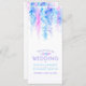 O cardápio de arte floral em cascata azul em aquarela. Moderno tipo de vinheta floral abstrata azul cartão de menu de jantar de casamento ou menu de evento especial em aquarela. Edite este cardápio com o seu próprio menu e pratos do jantar. Moderno cardápio de arte em aquarela solta abstrata azul, aqua e rosa. Ideal para casamentos de primavera com wisteria ou flores azuis e casamentos modernos rosa e azul ou outros eventos temáticos azuis. © Desenho e pintura em aquarela por Sarah Trett para www.mylittleedenweddings.com na Zazzle.