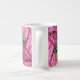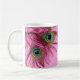 A caneca cor-de-rosa bonita com pavão colorido empluma-se o fim-acima.