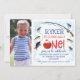 Este convite do primeiro aniversario do tema da pesca da aguarela é uma maneira bonito de convidar seu pequeno seus convidados. As características de design uma haste de pesca, peixe, pescando o bopper, alguma pena seduzem e um peixe seduz em um fundo branco. Eu igualmente adicionei algum texto da aguarela e algumas bolhas. O mesmo design está igualmente disponível sem uma foto na loja. O tema ofishally um ou bobinar da pesca da foto deste menino no um convite grande do aniversário está pronto para ser personalizado.