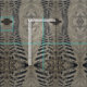 O teste padrão neste tecido vem de uma foto das trilhas feitas por um trator que conduz abaixo de uma estrada de fazenda da sujeira. As impressões do pneu formam listras do ziguezague e linhas do wavey neste tecido colorido tan.