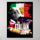 Uma adição perfeita a qualquer colecionador de poster de filme. Isto é baseado na poster oficial, mas com itens adicionais. A bandeira do Reino Unido atravessa Michael Caine e mostra um efeito retroativo de meio-tom popular entre os anos 60 e 70, juntamente com a bandeira italiana que mostra o valão. Uma nova disposição dos minis clássicos que se dirige em nossa direção totalmente iluminada com luzes especiais. Uma incrível representação deste clássico filme icônico.