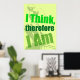 Um impressão do "Pensador" de Rodin com a famosa citação de Descarte em verde