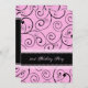 Convites de festas feitos sob encomenda do aniversário de 21 anos no teste padrão preto e cor-de-rosa elegante dos redemoinhos. Adicione seus detalhes do nome e do partido para um convite de aniversário original e à moda.