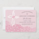 Este convite bonito e feminino da primeira comunhão sagrada pode ser personalizado para a ocasião religiosa especial da sua garota. As cores do texto e do plano de fundo podem ser alteradas para seu gosto. Apresenta uma cruz na moda, bem como flores de hydrangea rosa. A maneira perfeita de convidar convidados a compartilhar o importante sacramento religioso.