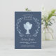 O primeiro convite para a comunhão deste rapaz moderno ilustra um cálice com um fundo azul marinho. Perfeito para a ocasião religiosa especial do seu filho, o texto e a cor de fundo podem ser personalizados de acordo com o seu gosto.