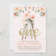 O primeiro convite de aniversário de uma garota rosa doce, com uma linda equipe e alguns arranjos florais cor-de-rosa. A design também inclui uma palavra grande em falhas de ouro. Este convite tribal de primeiro aniversário é uma forma fofa de convidar convidados para a primeira festa de aniversário da sua menina.
