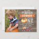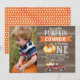 Procurando um primeiro aniversario de abóbora bonito para seu filho? O design apresenta uma grande abóbora e um caminhão em uma imagem de fundo de madeira. Este convite para primeiros aniversarios de fotos é uma maneira fofa de convidar os convidados do seu filho para a primeira festa de aniversário.