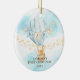 O Primeiro Ornamento de Natal do Bebê apresenta um balão azul de ar quente com girafa, raposa e elefante sobre fundo aquoso com estrelas espalhadas. Personalize com seu nome e data de bebê e você está pronto para ir! Um maravilhoso presente de guardiã para o natal de 1rua do seu bebê.