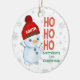 Celebre um Natal especial com este adorável ornamento de bonitão! Apresentando um bonitão alegre em um chapéu festivo de Papai Noel que diz "Papais noeis Está Aqui" e um texto lúdico de "Ho Ho", este ornamento é a manutenção perfeita para a primeira temporada de festas do bebê. Personalize-o com o nome do bebê para torná-lo verdadeiramente de um tipo. O fundo inclui flocos de neve delicados, acrescentando ao charme de férias. Este ornamento faz um presente maravilhoso para novos pais e uma adição preciosa a qualquer árvore de Natal. Texto personalizável (Adicione o nome do bebê) ornamento cerâmico com cores vibrantes de feriado Snowman com a ideia de presente de Excelente Santa hat para o primeiro Natal do bebê vem com uma fita suspensiva