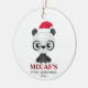Primeiro ornamento de Natal do bebê com um urso Panda giro vestindo chapéu e cinto de Papai Noel. Personalizável com o nome e o ano do seu bebê.