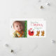 Este cartões de fotos de Natal 8x4 tem Bebês Primeiro Natal escrito com um lugar para você personalizar o nome e o ano. Abaixo disso, há um Papai Noel no trenó sendo puxado por duas renas bonitinhas. À esquerda, você pode adicionar sua própria fotografia. Há uma borda de arbustos de bagas sagradas ao lado dela. Designs Zenware
