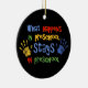 O que acontece no pré-escolar, PERMANECE no pré-escolar. Este ornamento bonito, colorido com impressões da mão do divertimento, é certo deleitar igualmente miúdos e professores. Grande presente do aniversário ou do professor. Original de PinkInkArt!