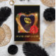 Bonito convite único e elegante para "salvar a data". A design tem uma imagem impressa de uma pintura acrílica de duas bandas de casamento douradas dentro a forma de coração. As cores são preto e dourado com uma rosa vermelha no lado do coração. Você pode personalizar esses convites para ajustado das suas necessidades do dia especial.