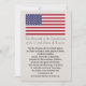 Cartão com a bandeira dos Estados Unidos da América e o Preâmbulo da Constituição na frente com "O que é um Veterano?" nas costas.