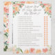 Este modelo de chá de noiva apresenta o jogo "o que ele disse sobre sua noiva", com 16 perguntas de sim ou não. Foto opcional no verso. Você também pode personalizar a cor do fundo por trás do padrão floral.