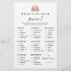 Diversão e na moda do que está no seu cartão de jogo de chá de panela. Jogo divertido para jogar na sua festa de chá de panela. Design de estilo moderno e mínimo com uma bolsa/bolsa de coração cor-de-rosa e fofinha com pontos que vão de 1 ponto até 100 pontos. O cartão de jogo pode ser personalizado com seu próprio sistema de ponto, assim como com as listas de itens.
