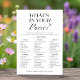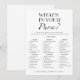Apresentando o "O que há na sua bolsa?" Cartão de jogo de chá de panela por CaMiDesigns! Este design minimalista na moda apresenta um tema branco e preto chico, perfeito para adicionar um toque de elegância a qualquer celebração de chá de panela. Os hóspedes vão desfrutar do desafio divertido e engajador de encontrar vários itens em suas bolsas, fazer-o um acréscimo memorável às festividades. Projetado tendo em mente a simplicidade e a sofisticação, este cartão de jogo certamente vai entreter e deliciar. Para obter assistência com pedidos, envio, informações sobre produtos e muito mais, entre em contato diretamente com o Atendimento ao Cliente da Zazzle.