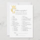 Este é um cartão de jogo What's On Your Phone? chá de fraldas. Raposa branca recheada em fundo branco na frente, e fundo amarelo com pontos de polca brancos na parte de trás.