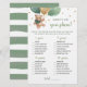 Adquira este cartão editável e desfrute de um Chá de fraldas de alta qualidade O que há no seu jogo telefônico para o seu evento! Este é um modelo de cartão, Você pode personalizar o cartão, mudar o texto como quiser! Chá de fraldas, Atividades de Revolução de Gênero! Sage Green e jogo Dourado.
