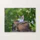 Um gato se senta no jardim verde, próximo a um tronco e olha à frente
