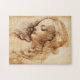 O quebra-cabeça principal da mulher de da Vinci. Esboço da tinta no papel desde 1473. Um dos stetches os mais admirados de Leonardo da Vinci, cabeça de uma mulher caracteriza uma jovem senhora bonita que abaixa sua cara ao visor com sua metade dos olhos aberta no projecto, seu cabelo de fluxo longo pendura para baixo sobre seus cara e ombros. Veste um diadem bonito e uns arcos pequenos em seu cabelo. Um presente bonito para fãs de esboços de Leonardo da Vinci, da arte de renascimento alta, e de retratos famosos.