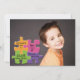Um convite bonito da foto que caracteriza quatro partes do quebra-cabeça e sua foto favorita. As partes do quebra-cabeça podem ser arrastadas a todo o lugar para caber em sua imagem. Podem ser feitos maiores ou menores (+-). A parte traseira do convite permite que VOCÊ ESCOLHA UMA COR para combinar sua foto. Seleto "edite", "fundo seleto", escolhem uma cor, clicam sobre "feito".