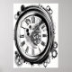 Um relógio mecânico preto e branco detalhado em um estilo inspirado em steampunk com o número romano nele. Esta é uma arte gerada por IA.