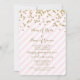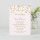 Os convites feitos sob encomenda da festa de noivado do modelo no pastel claro coram teste padrão cor-de-rosa e branco das listras com confetes da cor do ouro e texto escrito à mão do estilo. Inteiramente customizável com seus detalhes da festa de noivado. Também disponível em uma vasta gama de combinar produtos do casamento.